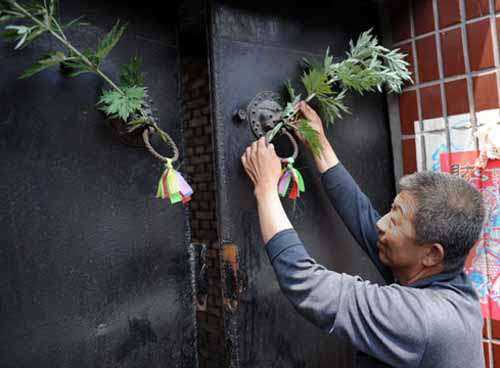 | 民谚说:“清明插柳,端午插艾。”在端午节,人们把插艾和营蒲作为重要的节日活动内容之一。家家户户都清扫庭院,采来菖蒲、艾条插在门嵋,或者悬挂在房间里。人们还用菖蒲、艾叶、蒜头等制成艾虎、花环等佩戴,不仅美丽芬芳,还可以驱瘴。 艾,又名家艾、艾篙。它的茎、叶都含有挥发性芳香油。艾,是一种菊科多年生草本药用植物,性温,味苦,可人药。用晒干的艾叶做成艾卷,能灸治多种疾病。煎服有止痢、止血和治疗妇女病的作用。而且艾的清香气息还能驱赶蚊蝇。 它所产生的奇特芳香,可驱蚊蝇、虫蚁,净化空气。中医学上以艾入药,有理气血、暖子宫、祛寒湿的功能。将艾叶加工成“艾绒”,是灸法治病的重要药材。 菖蒲是多年生水生草本植物,它狭长的叶片也含有挥发性芳香油,是提神通窍、健骨消滞、杀虫灭菌的药物。 可见,古人插艾和曹蒲是有一定防病作用的,端午节在门上、室内悬艾是有一定的科学道理的。在疾病流行的时候,在室内点燃艾绒,用烟熏,不失为一种简便、有效的消毒方法。 实际上早在战国时代,人们就已认识到艾的药用价值,《孟子·离娄上》说:“今之欲王者,犹七年之病求三年之艾也。苟为不畜,终生不得。”这个比喻告诉我们,艾是可以治病的。用艾治病的方法是把艾叶制成艾绒灼烧以灸病。 端午节也是自古相传的“卫生节”,这一天人们都洒扫庭院,除了在家里挂艾枝、悬菖蒲,还要在院子里面洒上雄黄水,饮雄黄酒,激浊除腐,杀菌防病。这些活动也反映了中华民族的优良传统。端午节上山采药,也是我国各个民族共同的习俗。 五月初五一大早,人们就起床,踏着露水到田野或花园去采集艾蒿。回来后,把它悬插在门上,叫“插艾”。这一习俗由来已久,至少可以追溯到南朝。梁宗懊《荆楚岁时记》云: “荆楚人以五月五日并赌百草,采艾以为人(形),悬门户上以雄毒气。” 所以民间插艾于门,目的是借助其挥发的气味,驱除邪气,消去病灾。 关于端午插艾,民间有许多说法。 一则传说是,唐朝嘻宗年间,黄巢造反。打到河南邓州城下,黄巢发现难民纷纷逃亡。黄巢见一中年妇女怀抱五六岁大孩,手拉二三岁小孩,便问她为什么离家外逃。妇人答道: “衙门说黄巢来血洗邓州,让大家逃命。”再问她为什么拉小抱大,妇人答道:“抱着的孩子是个孤儿,父母双亡。拉着走的这个孩子是我的。万一丢下一个,我就丢下这个小的。”黄巢听了深为感动,对她讲:“我黄巢专杀贪官污吏。你爱别人的孤儿,我爱天下的百姓。”说着,顺手拔下路边两株艾苗给她说:“有艾不杀!请大嫂回城对穷人说,只要门上插艾,就不会受到伤害。”妇人立刻回城传话,很快传遍全城。当晚穷人家的门上都插上了艾。第二天恰是端午,起义军攻邓州,看见门上插艾者不杀,开仓分粮,万民尽呼。从此便留下了插艾的习俗。 另一则传说是,很久以前,民间闹灾,一天,老神仙来到人间,变成个小老头,到一个村子巡视。他见一个老妇人用白面汤喂猪,汤中还有成块的饼子和馒头。小老头便向她要饭,不但什么都没要到,反而遭来了辱骂。小老头见老妇人太恶毒,便在她家墙上写下“明日起瘟病,全村人死光”几个字,便化作青烟遁去。第二天一早,老神仙拿着瘟瓶来到村子上空,忽见一妇女抱着大孩子、领着小孩子急忙过河。老神仙不解地问她:为什么不抱小孩子?妇人回答:“大孩子是前妻留下的,小孩子是亲生的。我要照顾好这没妈的孩子。”老神仙很受感动,拔了一株艾篙,教村民插在自家门便可免灾。虽然天上撒下了瘟疫,但全村人都得救了。而这一天,恰好是五月初五。 古人插艾是很有讲究的。所插之艾,有的做成人形,有的扎成虎形。有的把艾条插于房门的两侧,用葛藤绕缠起来,上面再悬一两枝曹蒲,远观翠绿,近闻清香,实在是一种极好的美化。 为什么艾上还要悬营蒲呢?原来营蒲也是一种药材,其根茎有镇痛、健胃、驱风、利尿之效。更主要的是曹蒲叶又长又直,像一把青铜宝剑,所以清顾禄《清嘉录》中说: “截蒲为剑,割蓬作鞭,副以桃梗蒜头,悬于床户,皆以却鬼。” 而葛藤坚韧如练,被看作是锁鬼的铁索6这样一来有如虎之艾、如剑之蒲、如索之藤把门,自然会将病魔恶鬼赶出门外。但对于人来说,这些青草却以其清香有助于健康。 在东北,人们不仅把艾蒲之类插于门房,有时还用来作女人的头饰,插于翼边。近人孙介寿在《端午晓起》一诗中写道: “村儿卖芍呼深巷,晓籁传潮耳鼓麻。 门悬蒲剑艾枝针,巷插灵符另进那。” 美丽的女子发髻上替一枝青白的艾,显得那么清纯,这也算端午的一个时景吧。 这天,男子也有插艾的习惯。宋代大诗人陆游《重午》诗记录了这样一个场面: “叶底榴花先蜂蜡,街头初卖范池冰。 世间各自有时节,萧艾着冠称道陵。” 在卖冰水的街头,那些道士们的帽子上插着萧艾,宣传自己是道教老祖张道陵的徒弟。宋人戴复古《扬州端午呈赵师)则说家家门上都悬挂着篙艾: “榴花角泰计时街,今日谁家不酒禅? 堪笑江湖阻风客,却随篇艾上束门。” 后来人们把艾草编成虎状于门端高挂,借以驱疫。清人周宝善诗云: “沿门端午贴灵符,悬起朱砂判子图。 艾虎蒲人同逐疚,雄黄倒挂酒葫芦。” 近人顾晋昌为辽宁人,他的《鸡塞集》中有三首小诗集中描写了北方悬艾的风俗: 《采艾》 “未能免俗与今同,率小儿孙越岭东。 采得芜芜新绿艾,为人为